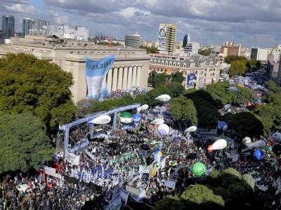 La movilización fue convocada por el Frente de Sindicatos Unidos (FreSU), un espacio que nuclea a más de 100 organizaciones gremiales de todas las centrales obreras, entre ellas ATE, la UOM, Aceiteros y los sindicatos aeronáuticos. La protesta tuvo como eje exigir a los mandatarios provinciales y a sus senadores que rechacen la iniciativa oficialista cuando sea tratada en el Congreso.